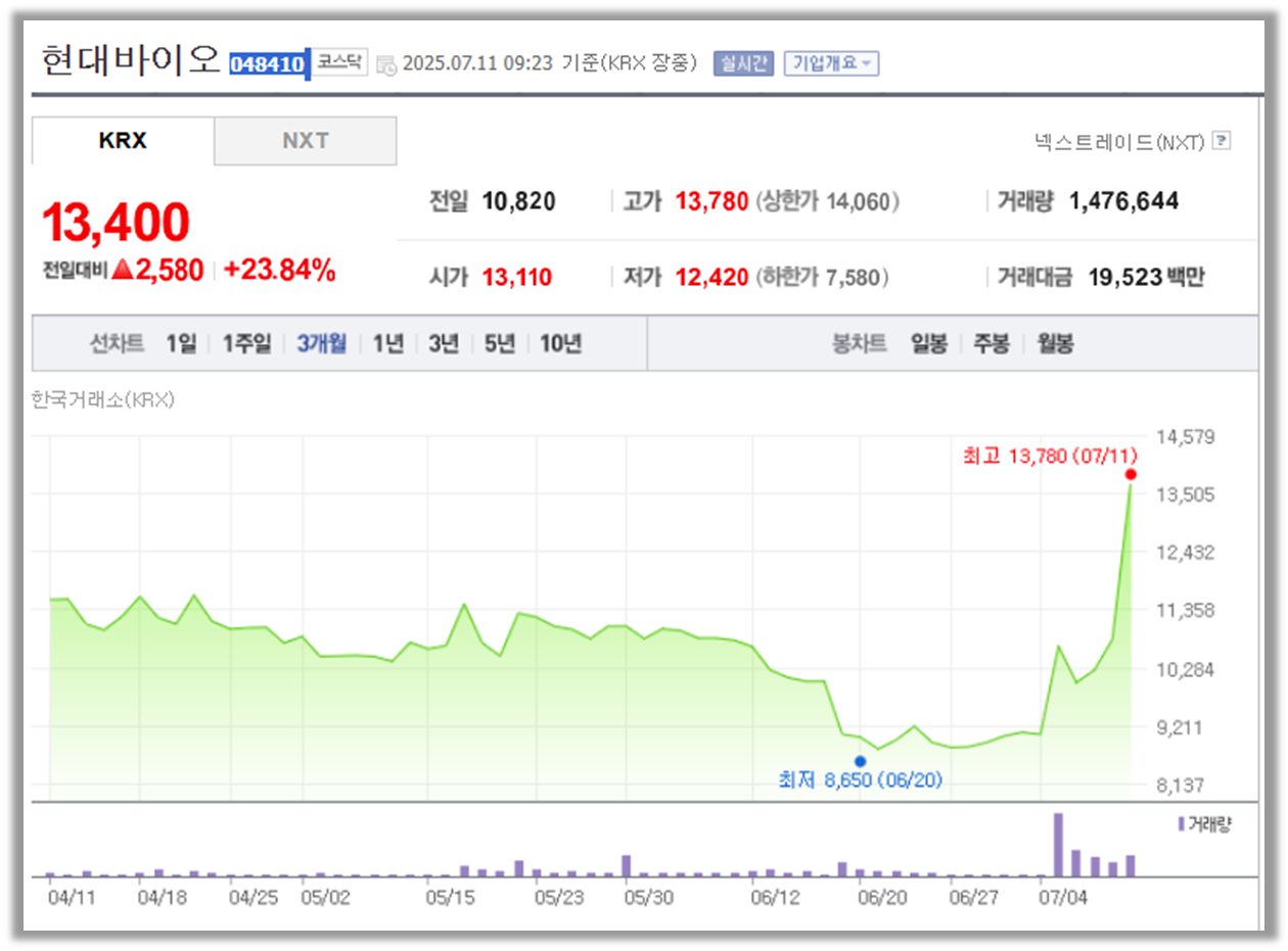 시가 총액과 장중 거래량을 살펴봐야 단기 포트폴리오를 구성할 수 있습니다. 현대바이오의 시가 총액은 6473억 원이며 장중 거래량은 866,603원 을 기록했습니다. 대주주의 정보는 중요하지 않을 수도 있으나 장기적으로는 확인이 필요합니다.