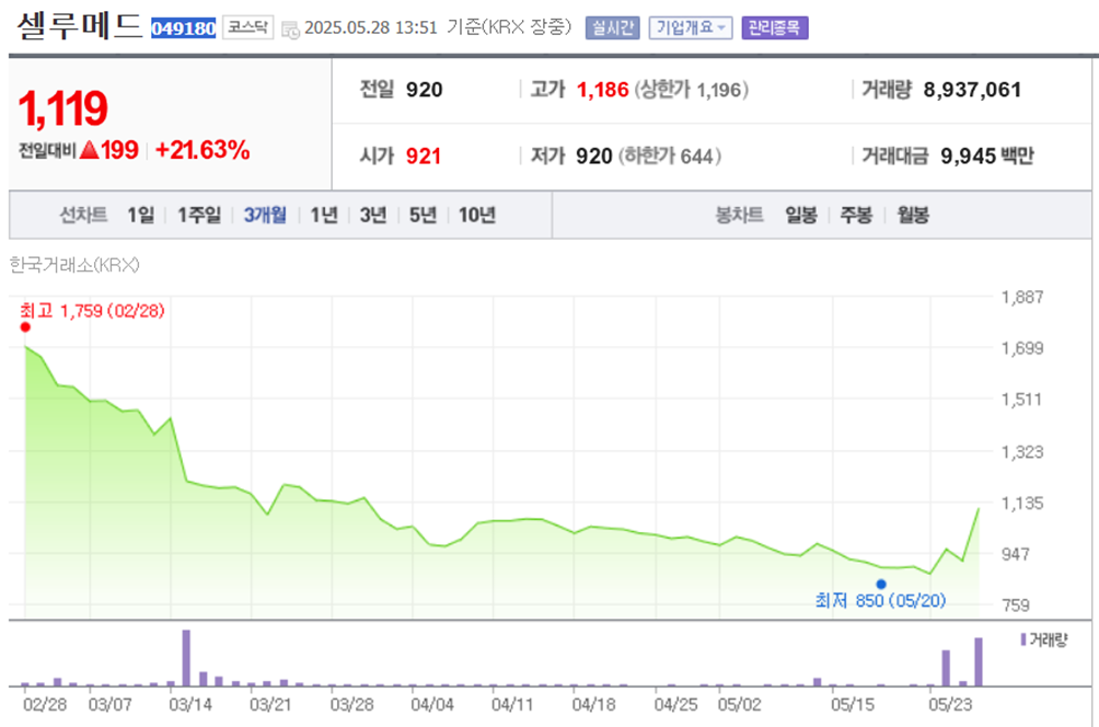 셀루메드 주가 어제까지 조용하던 종목 오늘 왜 갑자기 폭등했는지 정리해봤습니다
