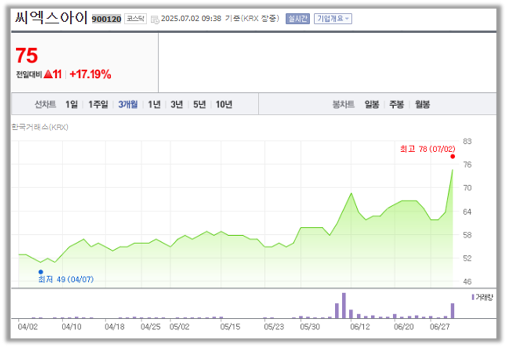 만약 단기 포트폴리오를 구성한다면 시가 총액과 장중 거래량을 살펴봐야 합니다. 씨엑스아이의 시가 총액은 225억 원이며 장중 거래량은 4,468,410원 을 기록했습니다. 대주주의 정보는 크게 중요하지 않을 수 있지만 장기적인 관점에서는 확인해보는 것이 좋겠습니다.