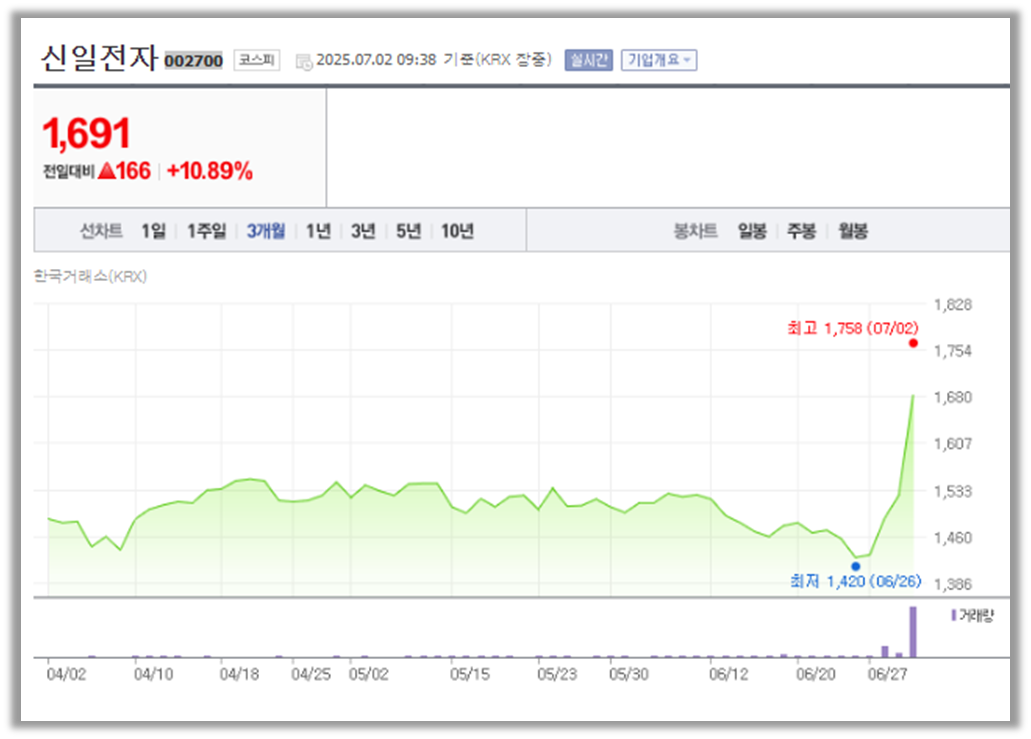 시가 총액과 장중 거래량을 살펴봐야 단기 포트폴리오를 구성할 수 있습니다. 신일전자의 시가 총액은 1214억 원이며 장중 거래량은 1,466,276원 을 기록했습니다. 대주주의 정보는 크게 중요하지 않을 수도 있지만 장기적인 관점에서는 확인하는 것이 좋겠습니다.