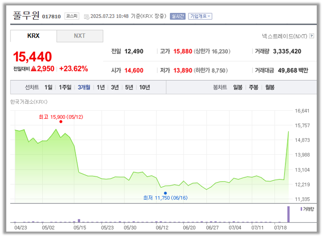 풀무원 주가 정보